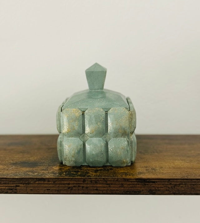 Boîte Design Rétro Carrée en Plâtre Céramique Vert & Or